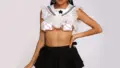 この衣装はスクールモチーフを取り入れたランジェリータイプのコスチュームで、ギンガムチェックのミニスカートとクロスストラップが目を引くデザインです。 この衣装は丈がミニ丈で、袖はオフショルダー風のフリルスリーブと細い肩ストラップを組み合わせ、ネックラインは深めのVカットにX状のストラップが入り胸元を印象付けます。 この衣装はウエストまわりを強調するベルト風ディテールと、ブラカップのパイピングや小さなワッペンがアクセントになっており、全体に軽やかな素材感で抜け感のある仕上がりです。 この衣装は撮影やプライベートなイベント、コスプレパーティーなどのシーンに映え、合わせる小物次第で甘さと露出のバランスを自在に楽しめる一着です。