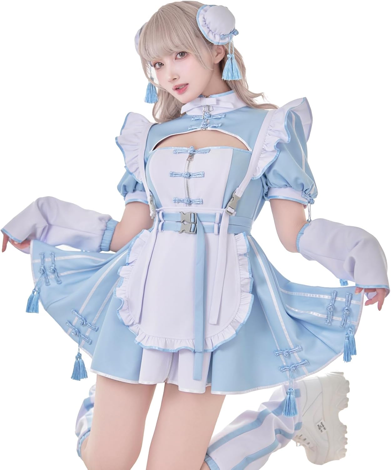 • 商品名: [Malymoon] コスプレ 天使界隈 チャイナ メイド チャイナ服 ジャージ ワンピース 地雷系 サブカル 衣装 仮装 マリームーン 6点セット 9919