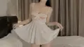 この衣装はオフィススタイルをモチーフにしたコスチュームで、透け感のあるレーストップとタイトなミニスカートを組み合わせた一体型のルックです。ハイネックの立ち襟に胸元の小さなキーシェイプカットが入り、長袖の薄手レースが腕のラインを繊細に見せます。ウエストはハイウエスト設計で、スカートは前面にクロス風の切り替えとギャザーを配した短め丈のボディコンシルエット。素材は伸縮性のある薄手生地と繊細なレースを組み合わせ、光沢のある滑らかなスカート面と透けるトップのコントラストが視覚的なメリハリを生みます。リボンやボタン等の付属は特に見られませんが、ストッキングやハイヒール、クラッチバッグと合わせると写真映えしやすく、パーティーやイベント、コスプレ撮影などで映える一着です。