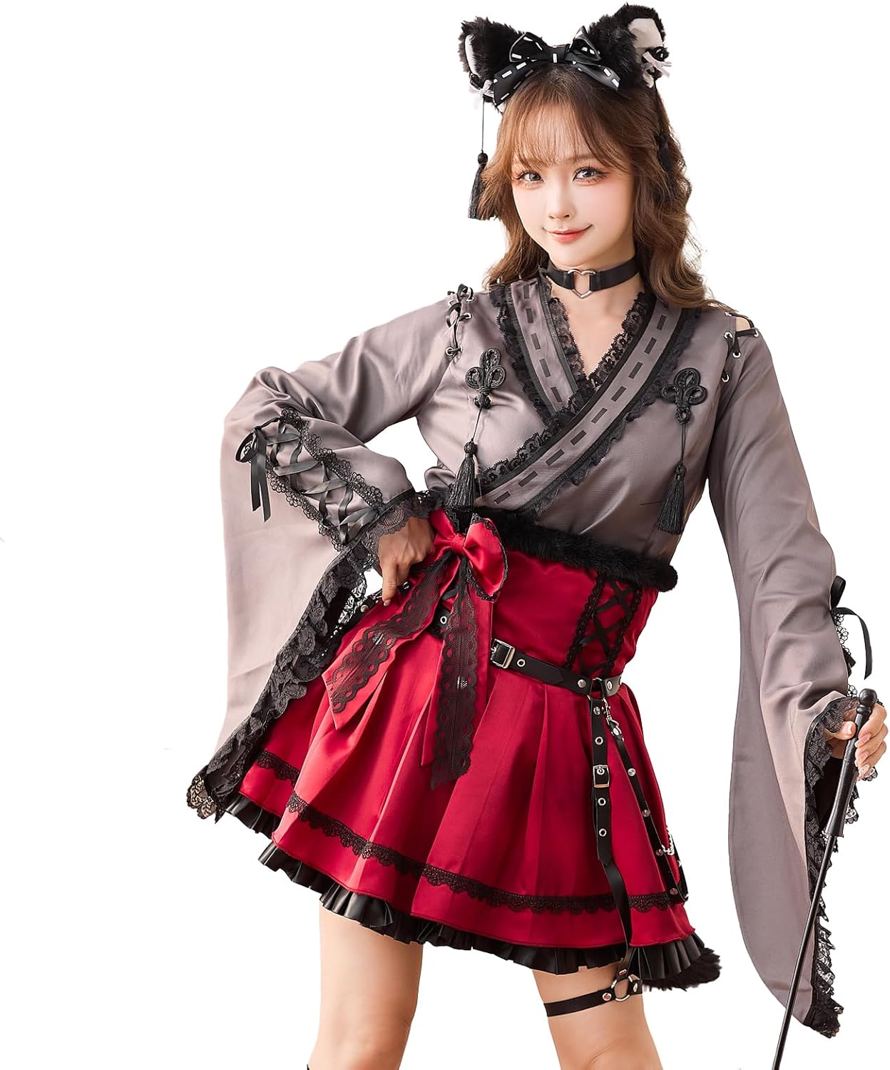 - 商品名: [Malymoon] コスプレ 巫女 みこ アニマル 動物 きつね 狐 レース ホワイト グレー レッド 赤 白 灰色 衣装 仮装 マリームーン 8点セット 10112