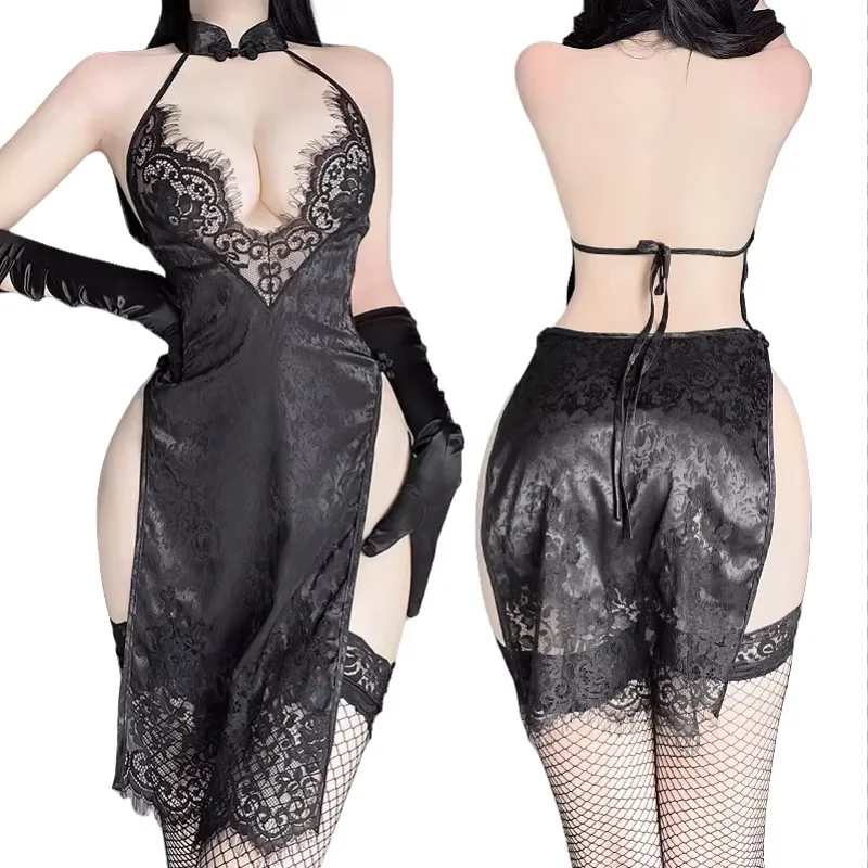商品名 | 女性用 2Bコスプレ衣装 ブラック・シルバー・グレー チャイナドレス セクシーランジェリー 下着 2点セット 水着 ホルターネックドレス パジャマ・ナイトドレス |