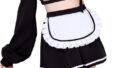 ハイカラーと肩の立体パーツを持つセーラー風のデザインを、光沢のある素材でモダンに再構築したコスチュームです。胸元は成形カップでしっかり形を作り、中央にW字の切り替えラインを配して視線を誘導します。胸下からウエストにかけて大胆に肌を見せるカットアウトでコルセット的な細身のシルエットを強調し、金属クリップ付きのガーターストラップがスカートとストッキングをつなぎます。ミニのプリーツスカートとフリル状の太ももバンドが甘さを足し、パイピング(テープ縁取り)や前立てのジッパー、透明ストラップなどで技術的な細部を整えています。素材は艶のあるPVC/ビニール系で、硬く端正なラインと反射でクールな印象を与える構成です。