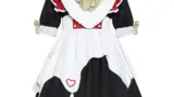 この衣装は花嫁ルックをモチーフにしたランジェリー風コスチュームで、繊細なレースで仕立てたシースルーのボディドレスにチュールのオーバースカートが重なるデザインです。丈はミニ〜ミディ寄りで、ノースリーブや細ストラップ、ハイネック調のレース飾りと成形カップを組み合わせたタイトなシルエットが特徴です。素材は透け感のあるレースと柔らかなチュール、伸縮性のあるパネル生地を使用し、フラワー刺繍やフリル裾、メタリックの縁取りがアクセントになっています。付属はベールと肘丈のレースグローブで、ブライダル撮影やテーマパーティー、ルームフォトなど特別なシーンに映える一着です。