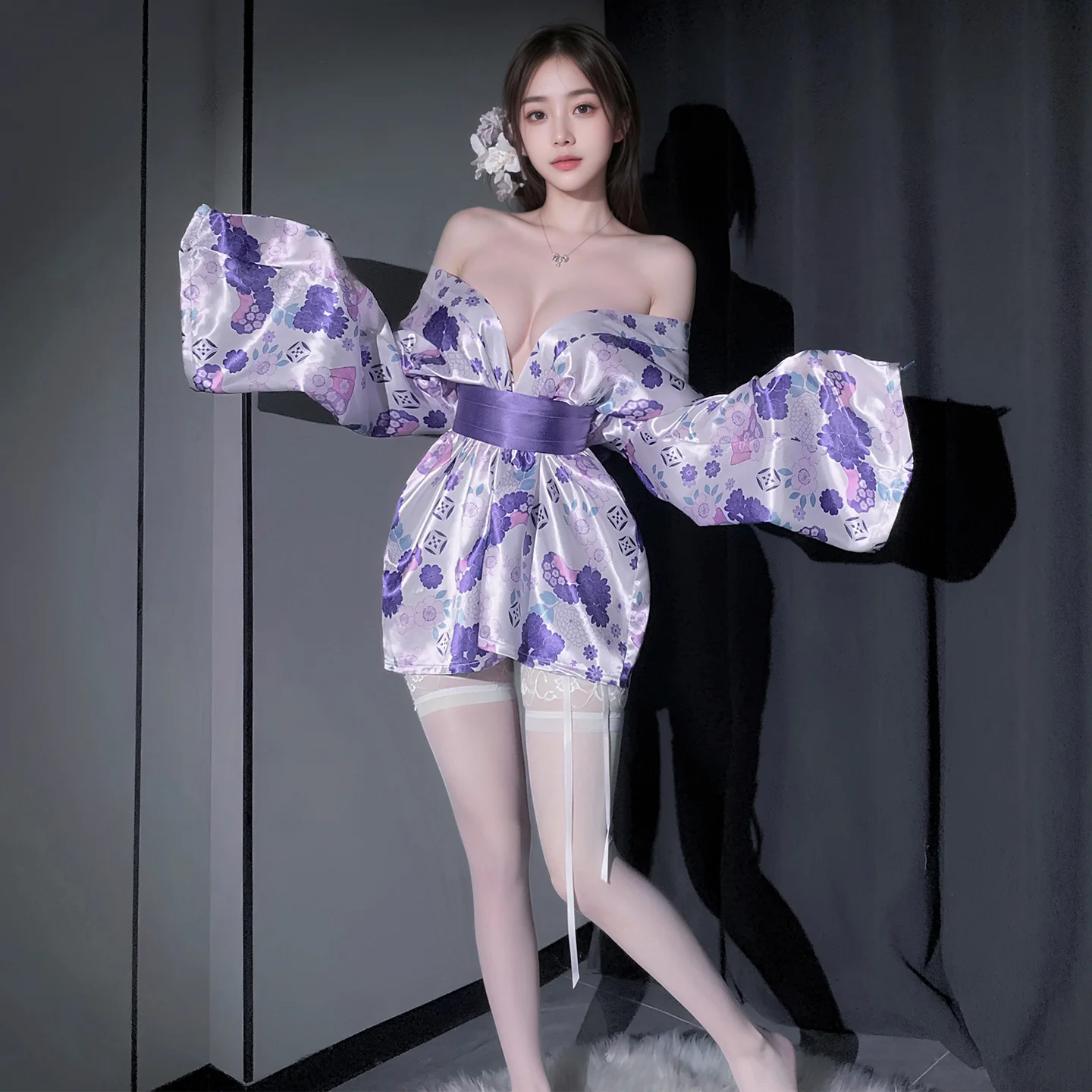 商品名 | 日本の着物 セクシー コスプレ衣装 女性用 伝統的スタイルのローブ 浴衣 桜 コスチューム パジャマ ソフトシルク ベルト ランジェリー |