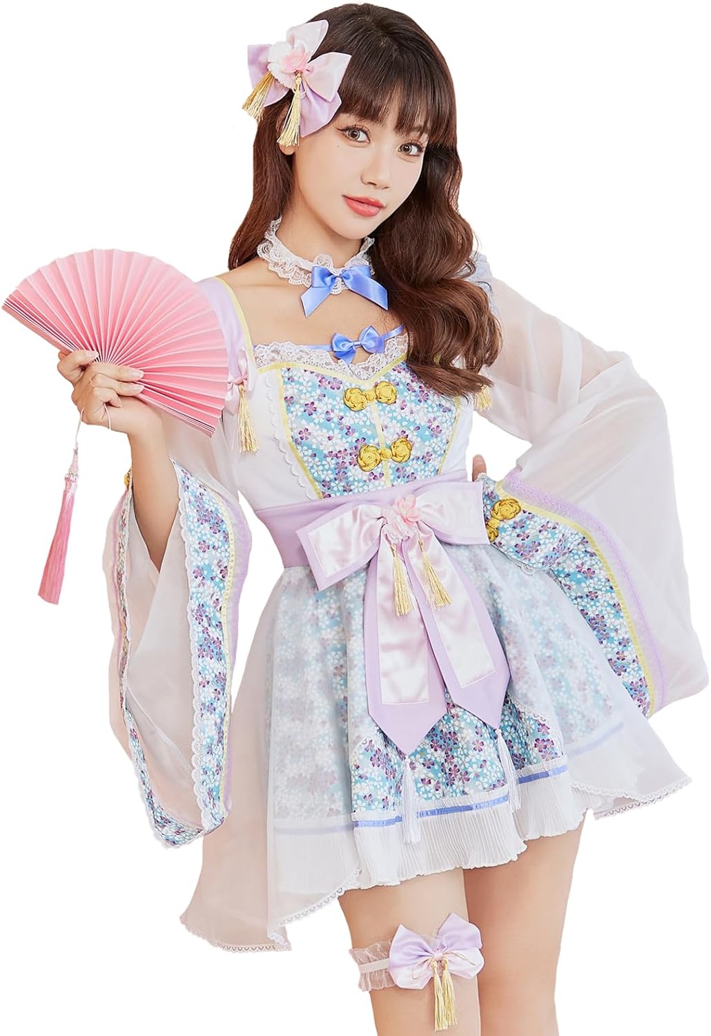 • 商品名: [Malymoon] コスプレ 着物 振袖 桜 ドレス ワンピース リボン和装 花柄 衣装 仮装 マリームーン 6点セット 9905