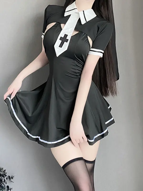 禁忌のシスター風ミニドレス — カットアウト×オープンバック