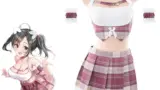 小さな花柄が全体に散りばめられたスリップドレスです。生地はサテン調の光沢を持つ伸縮性のあるジャージーで、肌に滑らかに沿いボディラインを際立たせます。バストは縦のカップシームで成形され、中央に小さな飾りリボンが付いているのが特徴です。細いショルダーストラップには長めのリボンが結ばれ、肩まわりのアクセントと調整機能を兼ねています。裾とネックラインには繊細なレーストリムがあしらわれ、裾はミニ丈でややタイトに収まる設計です。脇やウエスト部分には細かなギャザーが入り、伸縮性を活かして体にフィットするつくりになっています。背面に目立つ留め具は見られず、かぶって着るタイプで仕上げの縫製は比較的しっかりしています。ランジェリーとしてはもちろん、ナイトドレスとしても使いやすいフェミニンな一着です。
