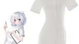 襟付きのホルターネックトップとミニスカートで構成されたセットです。トップはサテン調の光沢ある生地で襟と一体化したホルターネックが特徴、中央に垂れる細めのネクタイとネクタイ側面のラインが視線を集めます。バンド状のアンダーで胸下を支え、サイドが大きく開いたカットアウトでミッドリフを強調する作りです。スカートはハイウエストのタイトミニで、片側がシャーリング(ギャザー)で絞れるドローストリング仕様。伸縮のあるマットな生地でヒップラインに沿うフィット感を作ります。付属のシアーなストッキングとパンプス、猫耳カチューシャなど小物でスタイルを完成させる想定のコーディネートです。露出と構造のコントラストで、ウエストと脚線を強調するデザインになっています。