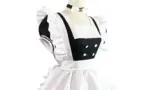 白い襟付きのホルターネックと深めのVネックが特徴の上半身は、薄手のシースルー素材でできており、透け感を活かしてバストラインを強調しています。胴は縦方向の切り替えが入ったコルセット風の構成で、サスペンダーのように見える太めのストラップがウエスト位置を引き締める視覚効果を与えます。ショート丈のボトムはハイウエストでヒップラインを包み込み、バックセンターにスリットが入るデザインになっています。太ももに巻くガーターストラップとニーハイ相当のストッキングで脚線をつなぎ、ハットに付いたバッジや調節可能なバックルなどの小物がモチーフ感を補強します。軽やかな伸縮性のあるメッシュとエラスティック素材の組み合わせで、フィット感と動きやすさを両立させた構成です。