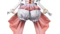 画像のボディスーツは、胸元が大胆に開いたオープンカップ仕様と、ウエスト〜股下にかけての編み上げ風ディテールが目を引きます。身頃は薄手のシースルーとチュールを重ねた透け感のある素材で仕立てられ、縁には繊細なレースと段差のあるフリルを配しています。肩や背中は細いストラップで背面が大きく開くバックレス設計です。股部はオープンクロッチ仕様で、後ろにはポンポンのしっぽが付属。付属品としてウサ耳カチューシャ、レースチョーカー、手首用カフスがあり、リボンと小さな飾り結びが全体の甘さをまとめています。軽やかな素材感と細部の装飾でフェミニンな印象を作る一着です。