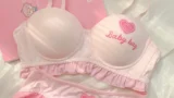 胸元はアンダーワイヤーと厚めのパッド入りカップで形を整えるコルセット構造になっています。胴回りは縦に縫い目の入ったパネル構造で、透ける花柄レースがボディラインに沿って配置されています。ウエストには光沢のある帯状ベルトが通り、その下に不規則にカットされた重ねチュールのペプラム風スカートが広がります。肩には透明なストラップが付属し、背中はホック留めで開きがあるデザインです。前中心には小さなリボン飾りがあり、全体はレースとメッシュ、チュールを組み合わせた軽やかな層構造で仕上げられています。セットにミニドレス本体とオーバースカート風のチュール、Tバックが含まれる構成です。