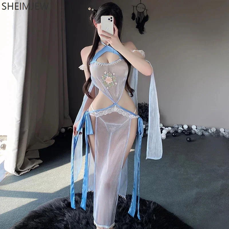 商品名 セクシーな女性用下着の猫耳コスプレ衣装 ブルー サスペンダー付きチャイナドレス風トップス 空洞デザイン お揃いのドレスとパジャマ 大人用ローブ セクシードレス 2025