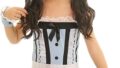 チェック柄の薄手シースルー素材で構成されたミニセットです。襟付きのショルダーヨークと小さなネクタイ風モチーフが上部にあり、肩まわりには細いレースフリルが縁取られています。サスペンダー風の細ストラップは金属クリップでウエストベルトに留められ、プリーツ加工のミニスカートとつながる設計です。背中は大きく開いた仕立てで、後ろでリボン結びにできるウエストタイがあるためフィット感を調整できます。スカート裾は軽くフレアする短めの丈で、プリーツの落ち感が透ける生地越しに陰影を作ります。縫い目や端処理は細かく仕上げられており、下に重ねるランジェリーとのレイヤードで表情を変えられる一着です。着用イメージでは白いブラとショーツが合わせられています。