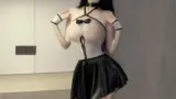 白をベースにしたセーラーカラーのワンピース型ボディスーツです。襟は伝統的なセーラーカラーを小ぶりにアレンジし、襟端と袖口に配した二本線のトリム(ネイビー/ピンクの色違い)が視覚的なアクセントになっています。前は深いU字のネックラインで胸元を大きく開けるカット、後ろは背中に沿う縦のシームとヒップを強調するハイレグ処理が施されています。生地は薄手で肌に吸いつくようなストレッチ感があり、やや透け感と光沢を伴うため身体の輪郭が出やすい印象です。首周り・脚口は細いバインディングで始末され、余計な装飾を削いだミニマルなデザイン。撮影では太めラインのニーハイソックスやリボン付きガーターを合わせており、組み合わせ次第でコスプレ寄りにもラウンジウェア寄りにも見せられる汎用性があります。