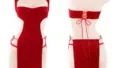 ハイネックのチャイナモチーフを取り入れたホルターネックミニドレスです。バストは成形されたカップ風のパネルで持ち上げつつ、中央の深い鍵穴カットがデコルテを強調します。胴まわりは花柄のシースルーレースを大きく配し、両脇の不透明パネルとのコントラストでウエストを細く見せる構築的な切り替えになっています。アンダーバスト下に小さなフリルを添え、裾はサイドスリットで脚さばきを確保。背中は大胆に開いたバックレス仕様で、両サイドのシャーリングと小さな立体的モチーフがアクセントになっています。伸縮性のある滑らかな生地と繊細なレースを組み合わせた、観せる部分と隠す部分のバランスでイメージを作る一着です。