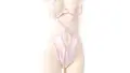 この衣装はメイドをモチーフにしたランジェリーテイストのボディスーツです。ハイレグのミニ丈シルエットで脚長効果を与え、細めの肩紐とスイートハート風ネックラインに繊細なレーストリムを配してフェミニンに仕上げています。バストは透け感のあるレースパネル、ボディは伸縮性のあるベース素材で程よくフィット。中央には光沢あるミニエプロンとフリル縁取り、黒いパイピングと小さなリボンがメリハリを作り、取り外し可能なパフスリーブや調整式のガーターストラップ、レースのサイハイ風ストッキングと合わせやすくなっています。撮影、コスプレイベント、テーマパーティーなどで存在感を発揮する一着です。
