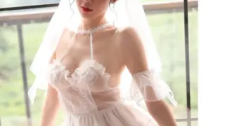AliExpress 儚げブライダルランジェリー — ホルターネック×ティアードフリル 透け感のあるチュールを主体に組まれたブライダルランジェリーです。ホルターネックの細ストラップが首元から胸元へと一本で落ち、カップは薄手のシースルーにフリルで縁取られています 2025.10.21 AliExpressコルセット