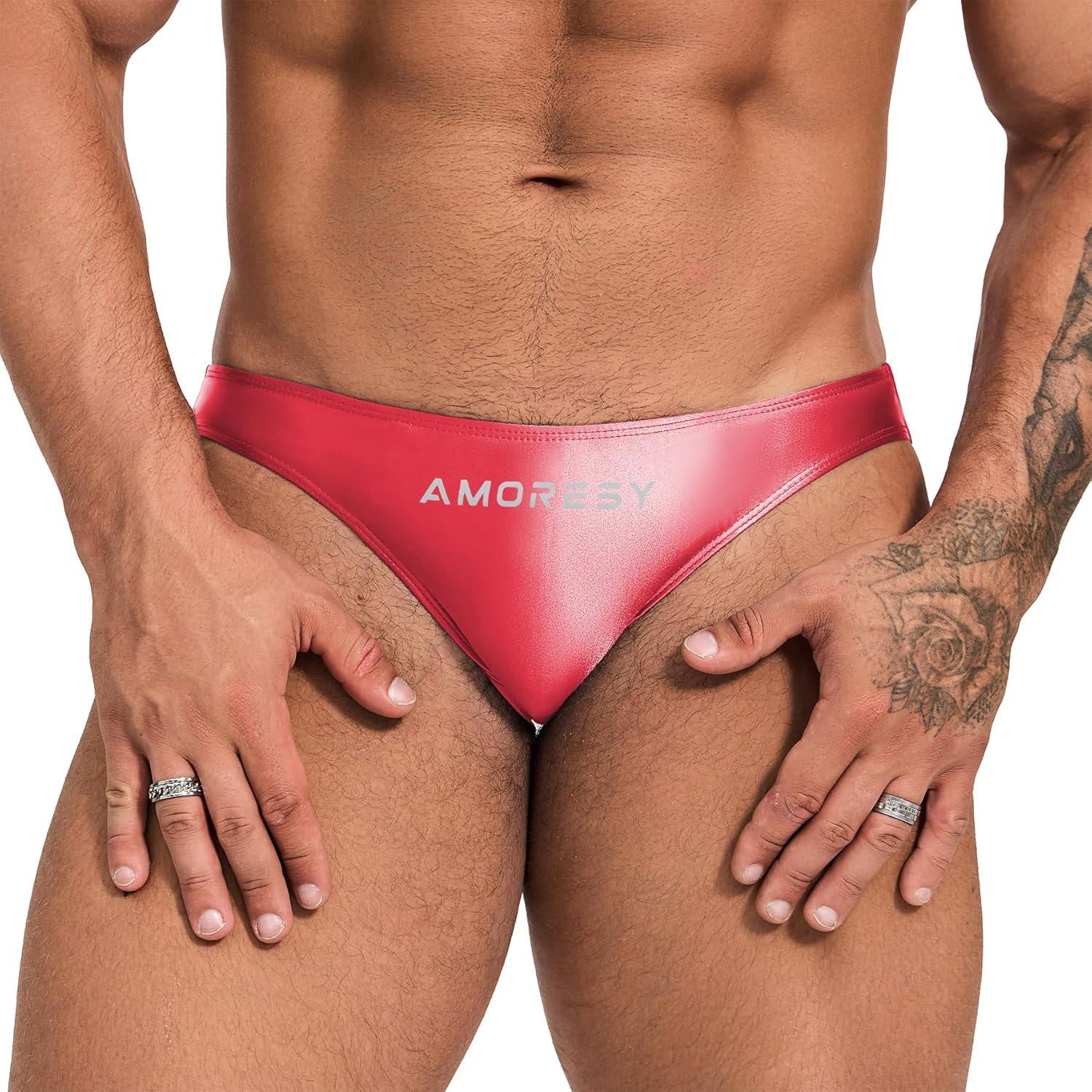 裏地は無いので水着には向かないかもしれませんが、amoresy独特のツルテカ、光沢感は穿いていて最高に気持ち良いです。股上が深目なので有事にもしっかり収まってくれます。今度はTバックタイプを購入します。