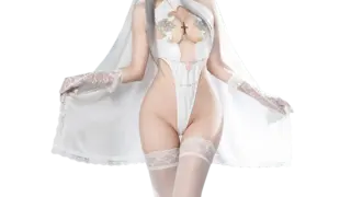 AliExpress シスター風ハイレグボディスーツ:ベール・グローブ付き シスターのモチーフを大胆に再構築したハイレグワンピースです。光沢のあるサテン調生地がボディに沿ってフィットし、腰位置を高く見せるハイレグカットで脚線を強調します 2025.10.21 AliExpressシースルーシャツ