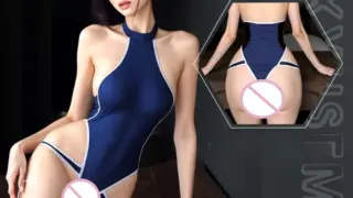 AliExpress ネイビーハイネック・ハイレグボディスーツ:白縁切替とダブルストラップ ネイビーのボディスーツは、光沢のあるストレッチ素材で体に密着するフィット感が第一印象です。首元はハイネックで顔まわりをすっきり見せ、両脇は深く切り込まれてウエスト~ヒップの側面を大胆に露出します 2025.10.16 AliExpressネイビー