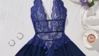 AliExpress 花レース×シースルーのストラッピーベビードール|レースカップ&タンガ付 胸元はアンダーワイヤー入りのレースカップで支えを確保しつつ、花柄の刺繍が繊細に広がるデザインです。カップ上部からデコルテへ伸びる細いダブルストラップ(ストラッピーデザイン)が立体的な谷間を演出します 2025.10.20 AliExpressレースワンピ
