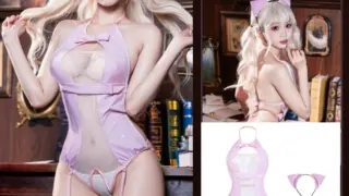 この衣装はランジェリー調にアレンジされた猫耳コスプレで、甘さと大人っぽさを両立させた一着です。胸元はレースのバルコネット風カップに大きなリボンをあしらい、細いホルターストラップがデコルテを美しく見せます。ウエストは大胆なサイドカットで肌の抜け感を演出し、前後に配された編み上げリボンがコルセットのよう...