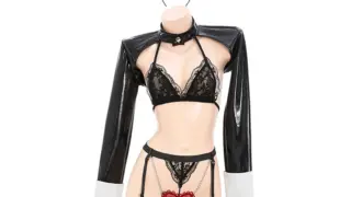 AliExpress アニLVナイトクラブバニーガールセクシーランジェリーコスプレラブラビットメイド制服誘惑パジャマ衣装エロティックコスチューム この衣装は光沢のあるフェイクレザーと繊細なレースを組み合わせたバニー風ランジェリーセットです。短めのクロップドジャケットは肩を露出させるデザインで長めの袖に白いカフスが付属し、首元はボタン付きチョーカーで引き締めます。ブラはホルターネックの三角レースで透け感があり、バックは細い紐で結ぶ仕様。ハイカッ... 2025.10.06 AliExpressバニー