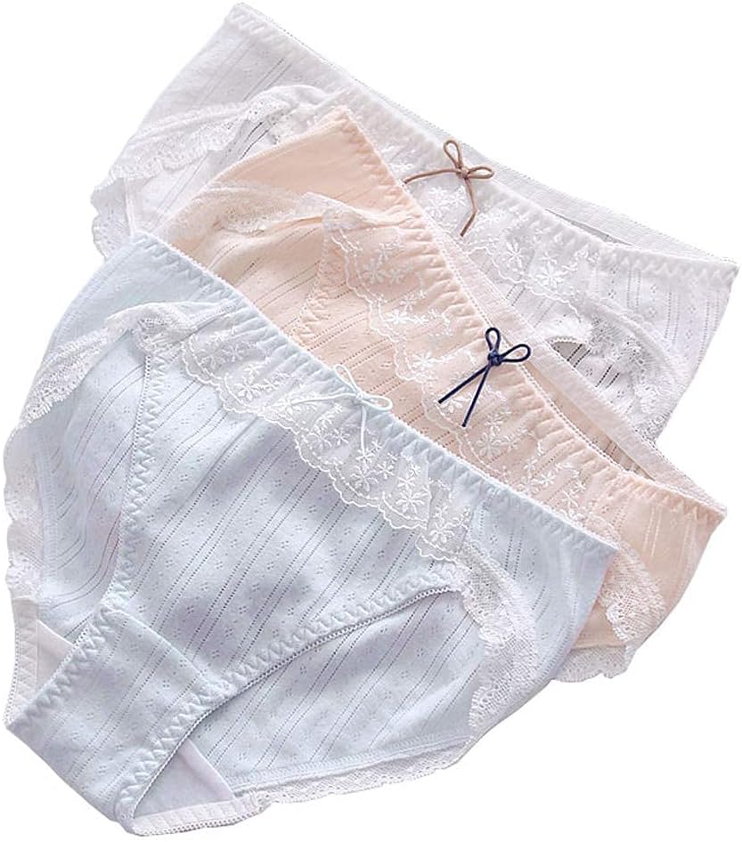 [Laisve] 綿100%/綿95% パンティー3枚組 M L XLサイズ 透気快適コットン生地 豊かな10種類のデザイン カラフル6色 可愛いフリル リボン レディース学生下着 フルバックショーツ ショートパンツ 大きいサイズ