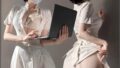 - ❤低胸デザインのキャミソールワンピースとショートカーディガンのセットで、上品な谷間見せと膝上のショート丈が女性らしい魅力を強調。伸縮性素材がボディラインにフィットし、S字カーブを美しく演出。デートや撮影会に最適な「セクシー ワンピース セット」。