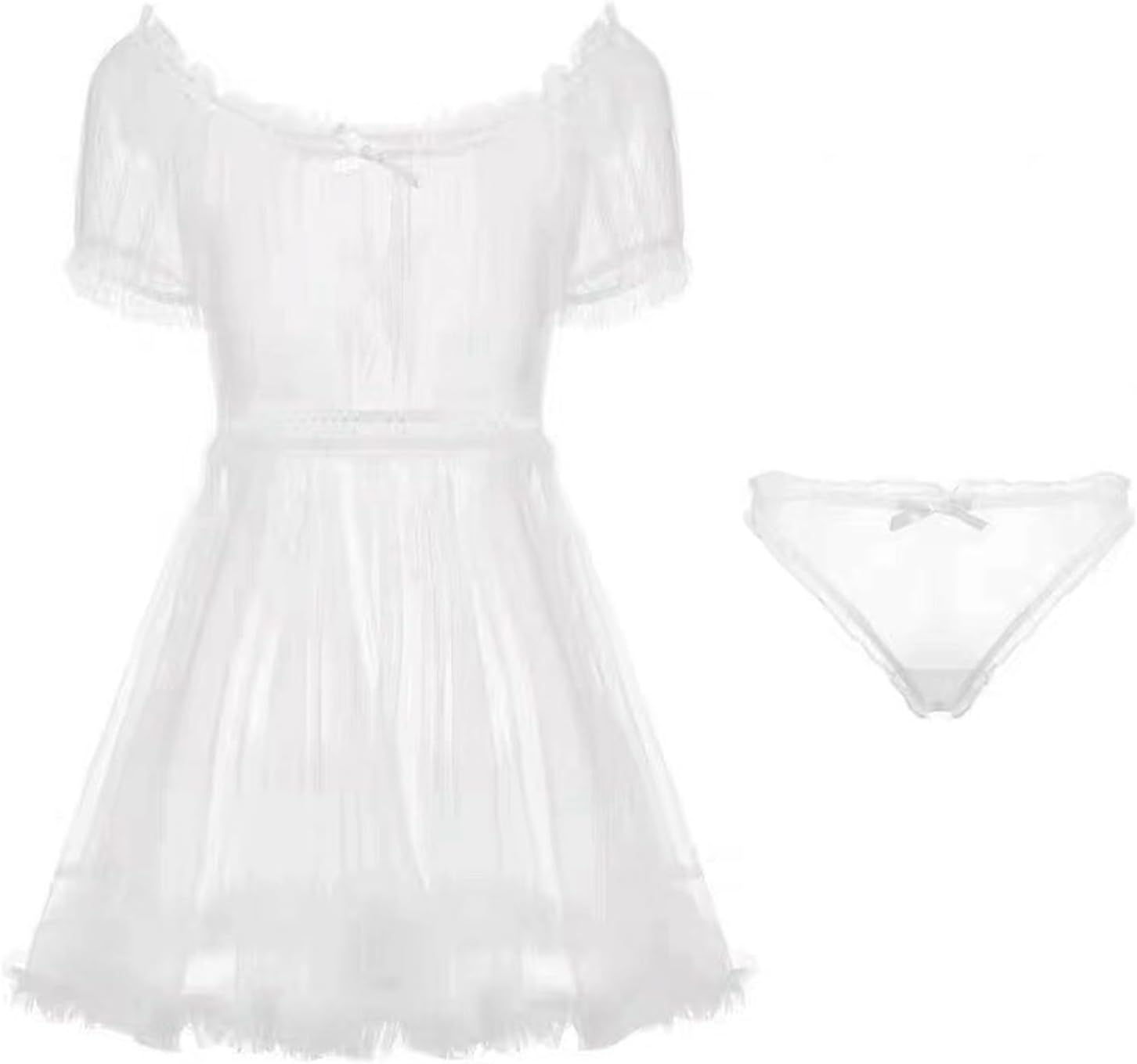 [LIKENNY] パジャマ 透明 ナイトウエア 人気 スリップ セクシー 天使 ふわふわ 花嫁 勝負 極薄 ワンピース 写真 撮影 レディース ミニ レース メイド服 コスプレ コスチューム かわいい 萌え ホワイト 清楚系 透明 ブラウス キュート プレゼント