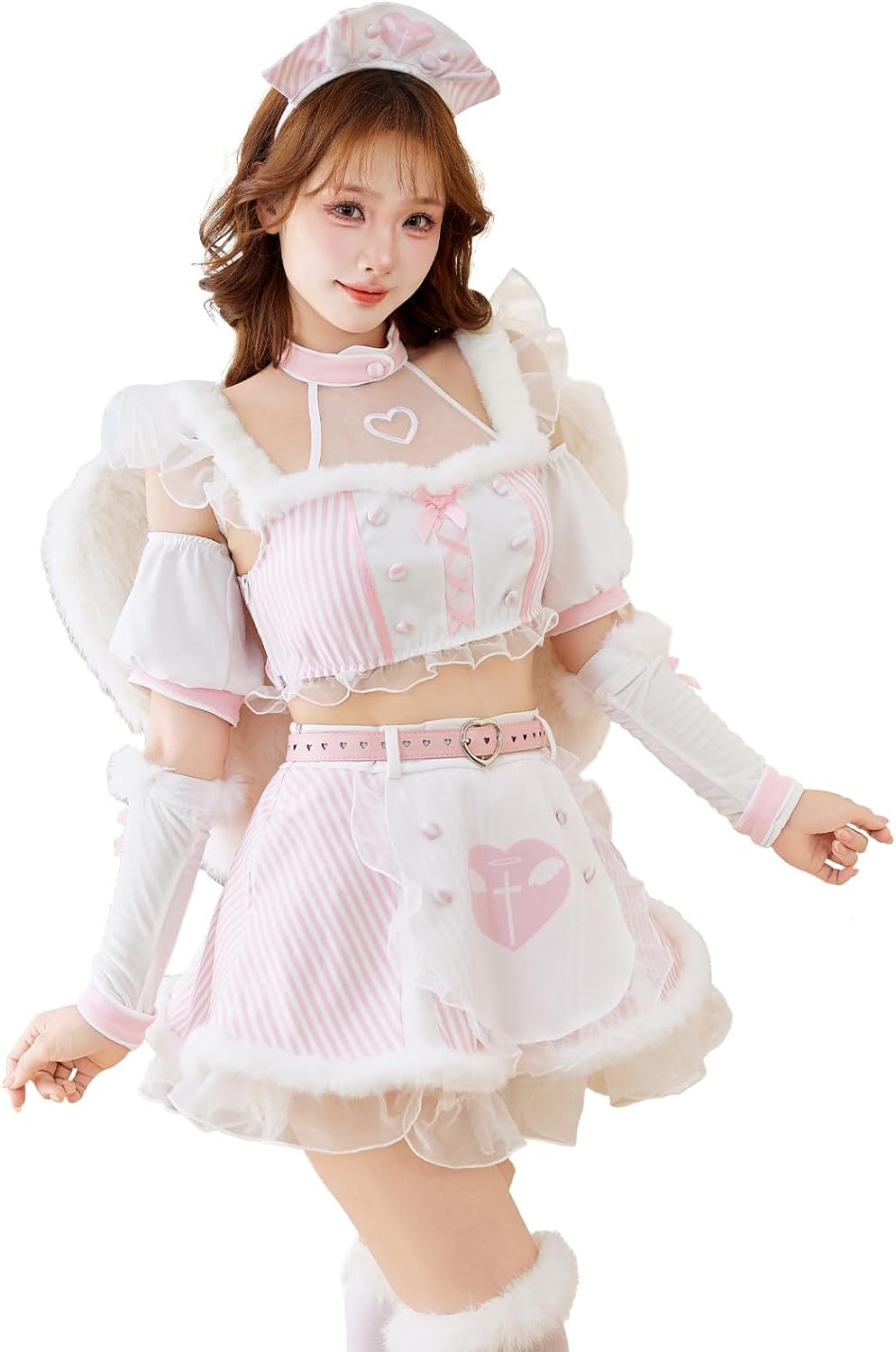 - Malymoon(マリームーン)オリジナル ミルキーカラー×ストライプがかわいいエンジェルナースコスチューム。 ハロウィンコスプレ10点セット。