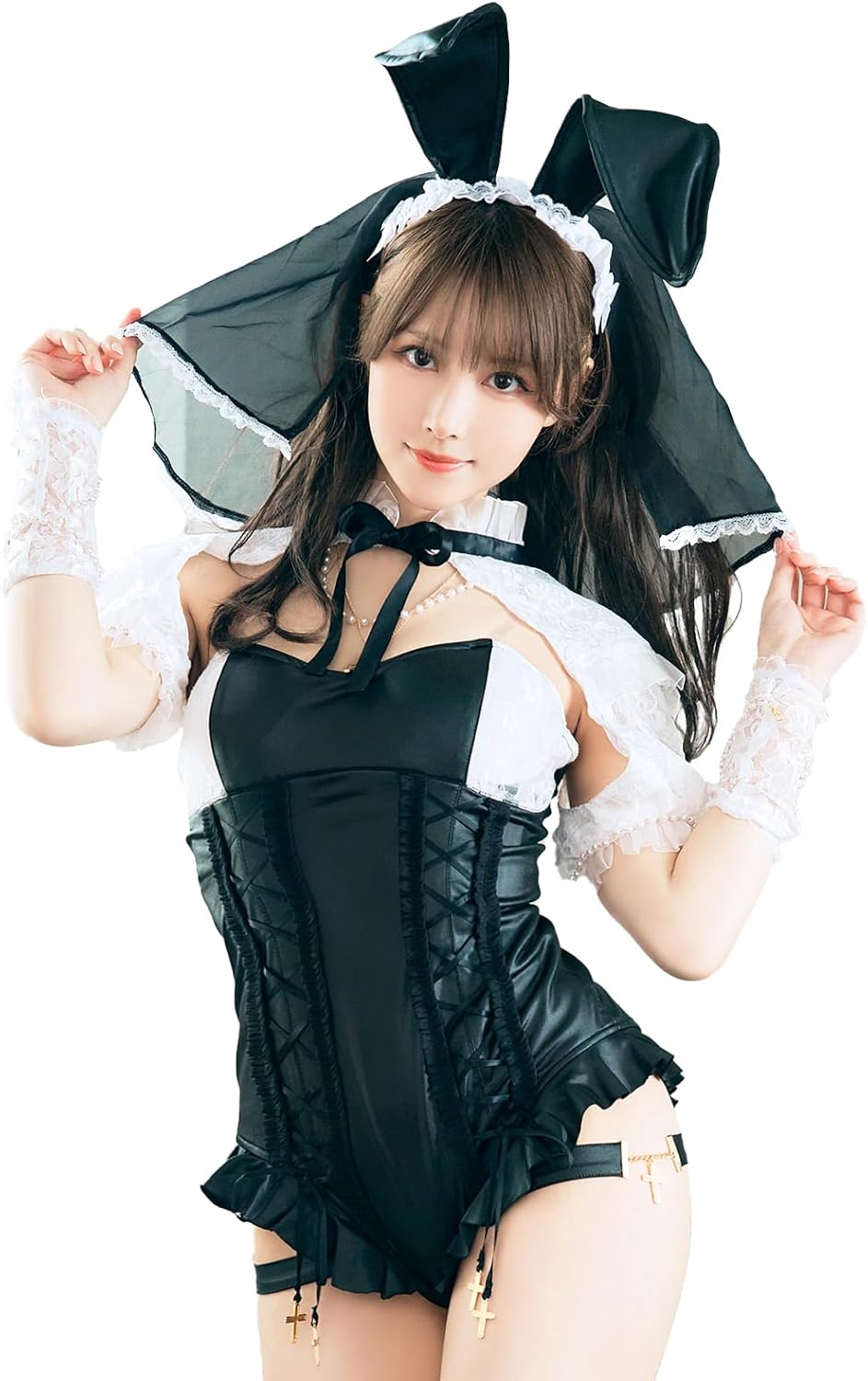 Malymoon(マリームーン)オリジナル レースアップで上品セクシーなバニーシスターコスチューム7点セット。