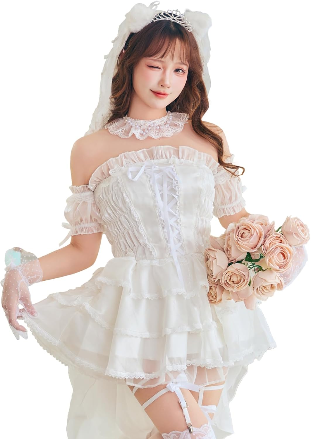 - Malymoon(マリームーン)オリジナル ラグジュアリーなブライダルコスチュームに白猫が新登場!!。 オリジナルコスプレ7点セット。