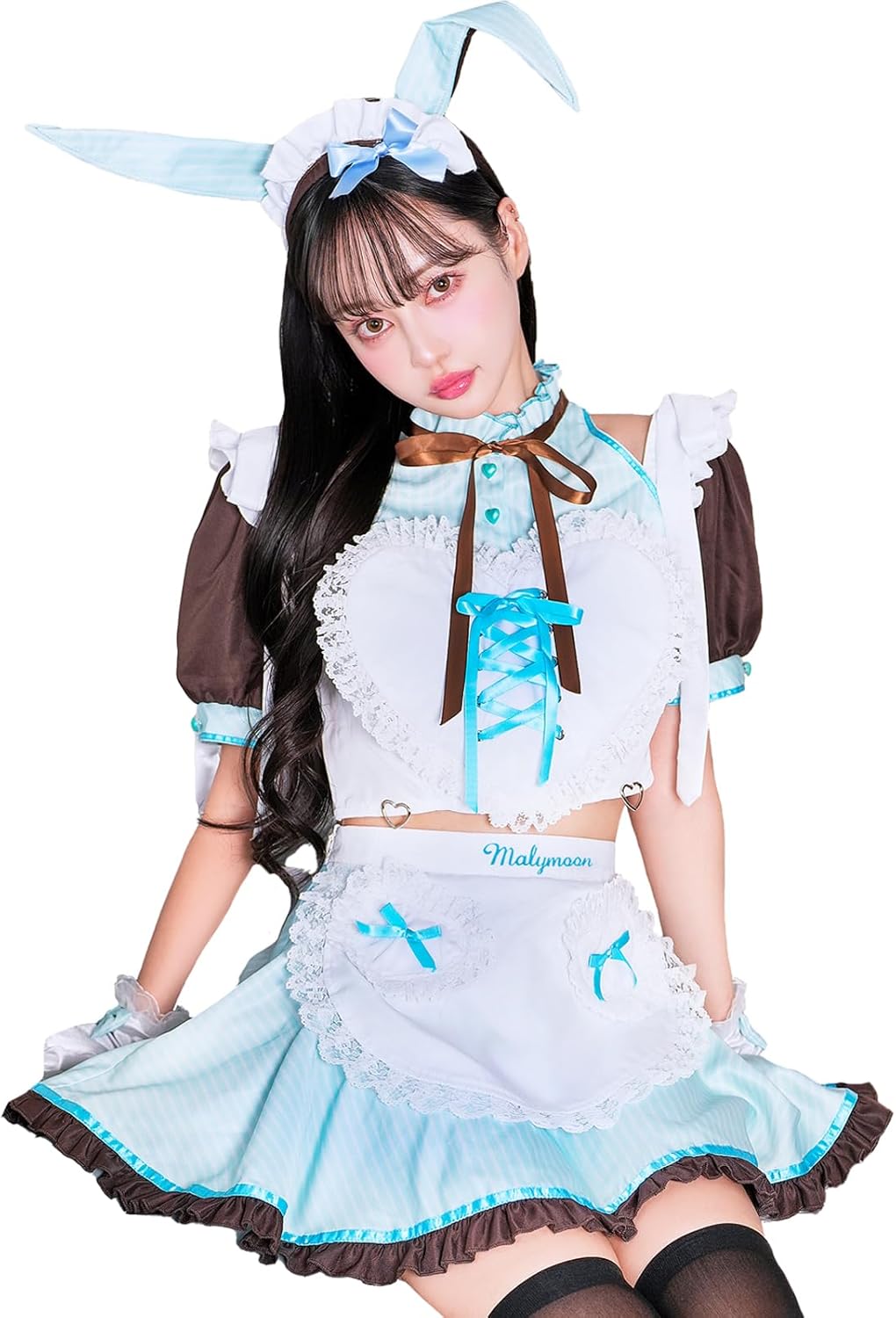 - 商品名: [Malymoon] コスプレ メイド バニー ブルー ウエイトレス ストライプ 仮装 マリームーン 6点セット 9902-2