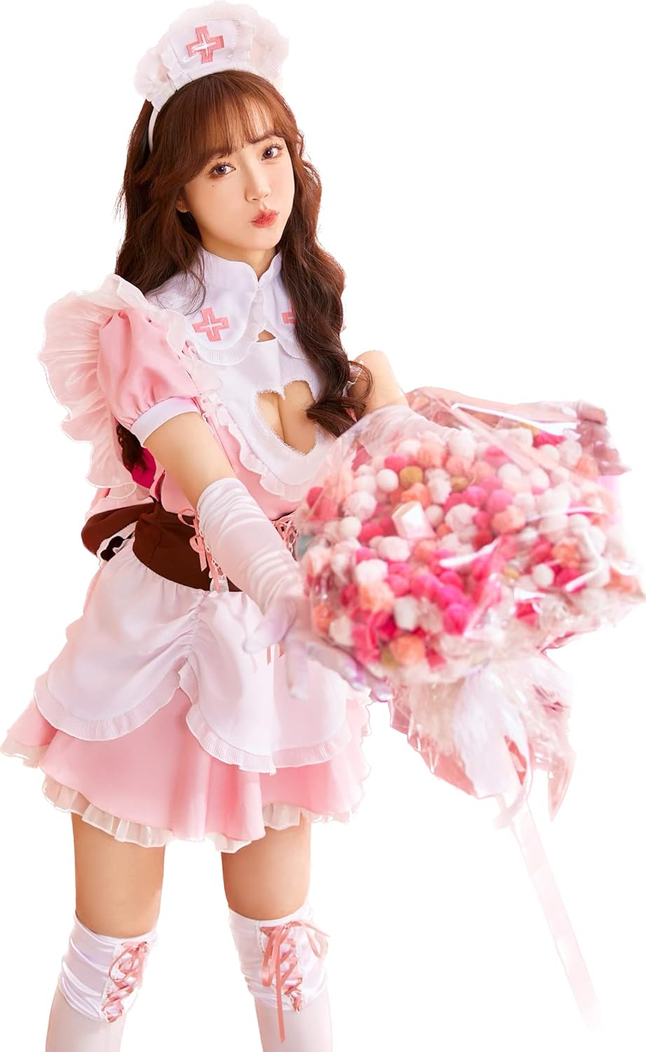 [Malymoon] メイド服 メイド ナース 看護師 看護婦 ピンク コスプレ衣装 ハロウィン コスプレ かわい…