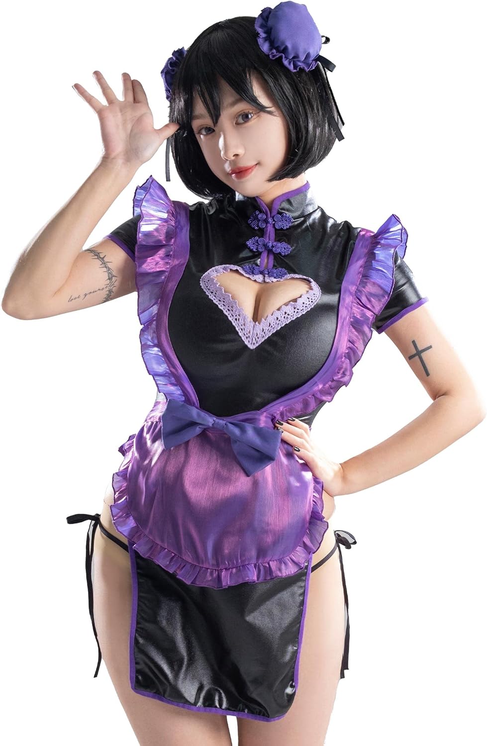 [Miccostumes] 大人 女性 コスチューム メイド コスプレ 衣装 セクシー 胸開き ハート チャイナ ドレス ランジェリー セット