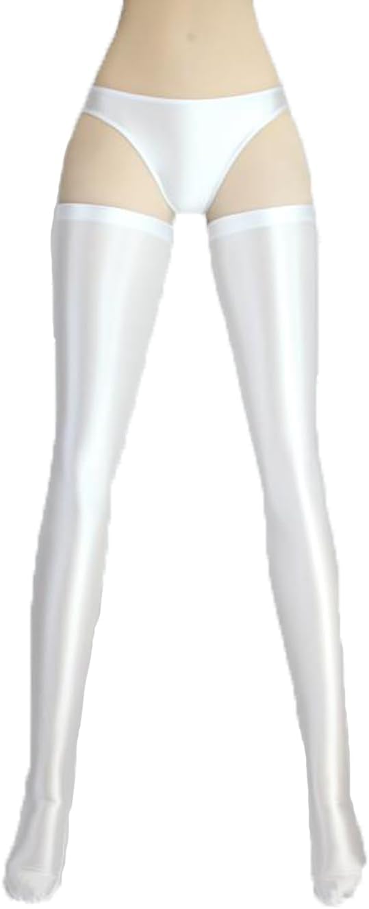 MJINM 超光沢ニーハイストッキング ロング 波型滑り止め 伸縮性 極薄素材 激密着 目立つレースクイーン キャンペーンガール パーティー 大胆コスプレ/超誘惑セクシー/ハローウィン(ホワイト、XXXL)