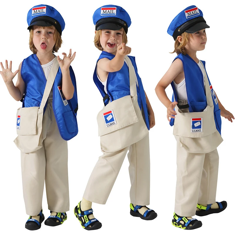 S-XL 子供用 ブルーメールマン コスプレ ハロウィン コスチューム 子ども 男の子 女の子 カーニバル パーティー パフォーマンス ポストマン メール配達員 アウトfit