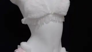 AliExpress フェイクファーのバニーブラ&ショーツセット フード耳とリボン装飾 全体はフェイクファーと透け感のあるオーガンジーフリルを組み合わせたバニーテーマのセットです。ブラは三角カップを短めのファーパイルで覆い、カップ間に小さな金具の留め具が見えます 2025.10.22 AliExpressバニー