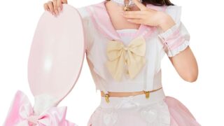 AliExpress 想像を誘う甘さ、うさ耳モチーフのシースルーフリルセット 胸元を支えるビスチェ風のトップと、透け感の強いオープンフロントスカートを組み合わせたランジェリーです。細い肩ストラップで胸をすくい上げるスクープネックのカットと、胸下の小さなリボンが視線を導きます 2025.10.22 AliExpressシースルーシャツ