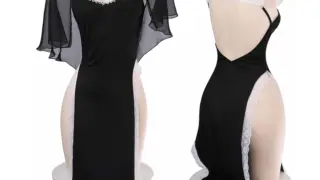 AliExpress 抜け感で魅せるオープンバストハイレグ — 骨モチーフの抜腰ボディスーツ