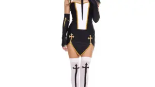 画像の衣装は、身体のラインをそのまま描き出すシアーメッシュ製の長袖ミニワンピースに、小ぶりのフリル付きエプロンとヘッドドレスを組み合わせたメイド風セットです