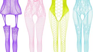 Amazon [JDiction] 豪華 4点 セットセクシーボディストッキング 穴あき全身網タイツシレオタード シースルーアダ…