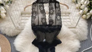 AliExpress 女性用フローラルバックレスレースボディスーツ ワンピーススリムフィットキャットスーツ ファッショントランスペアレントホロエロティックセクシーハルターコンビネーションロンパー この衣装は繊細なレースとシアーメッシュで仕立てられたボディスーツ風ランジェリーで、首元を留めるホルターネックと深いVラインがフェミニンな肌見せを演出します。フロントは花柄のレースストリップが縦に入るデザインで、ウエスト部分にさりげないフレアライン(ペプラム風)を配しメリハリのあるシルエットを作ります... 2025.10.10 AliExpressランジェリー