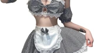 Amazon [YUEEI] コスプレ セクシー メイド服 ホワイト 白 透け透け 過激 肩出し 袖なし レース フリル 蝶結ぶ…