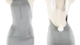 この衣装はダイヤ模様のシアータイツを主役にしたコスチュームです。細いラメ糸で描かれた斜めのラインが脚を包み込み、交差することで立体的なダイヤ格子を作るデザインが特徴です。丈はウエストまで届くフルレングスで、薄手のストレッチ素材が肌にフィットして脚線をすっきりと見せます。ミニスカートやベルト、小物と合わせることでミニマルながら目を引くコーディネートになり、厚底シューズやショートブーツとの相性も良く、撮影やイベント、パーティーでのポイントアイテムとして活躍します。伸縮性と着脱のしやすさも備え、普段使いからコスプレのアクセントまで幅広く使える一着です。
